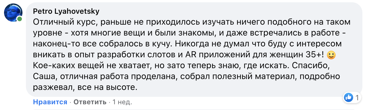 К слову, на первой лекции, во время знакомства я спросил ребят зачем им эти курсы. Кто, чего от них ждет. И от этого ответа корректировал подачу, делая акценты в разных местах.
