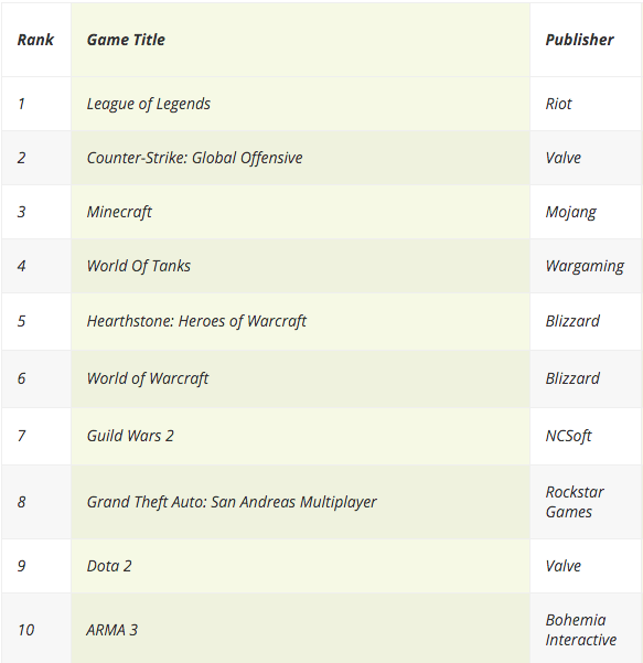 Вот как распределились деньги по жанрам в 2014 году на PC играх. Как видим LoL, WoW и подобные имели хорошую часть рынка. Сейчас картина изменилась не значительно – шутеры, в первую очередь CS:GO (Valve) уверенно закрепился в тройке лидеров, и меняет картинку по рынку в целом. Ознакомиться с рейтингами можно в последнем обновлении Newzoo.