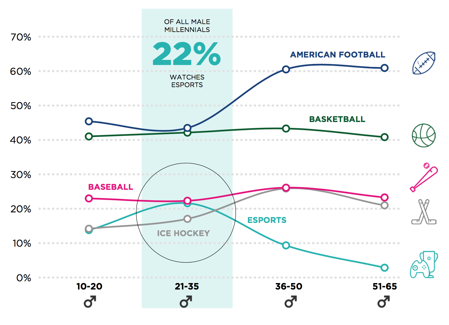 Сравнение аудитории с традиционными видами спорта