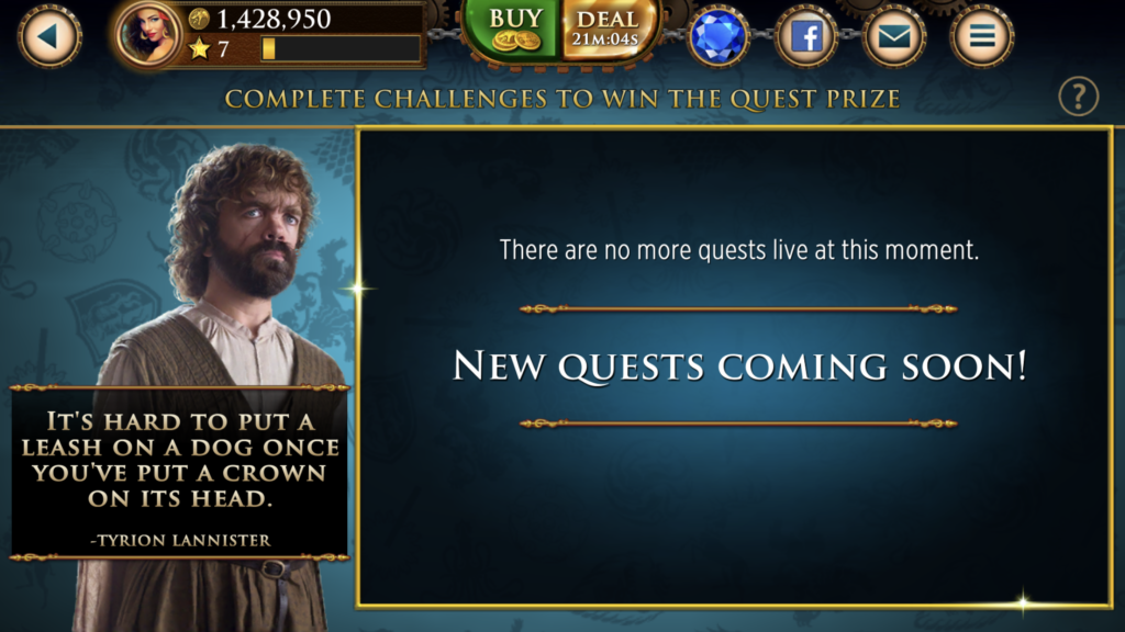 На 7 уровне открылся новый функционал “Квесты”. Но там ничего не оказалось, soft launch все-таки 🙂