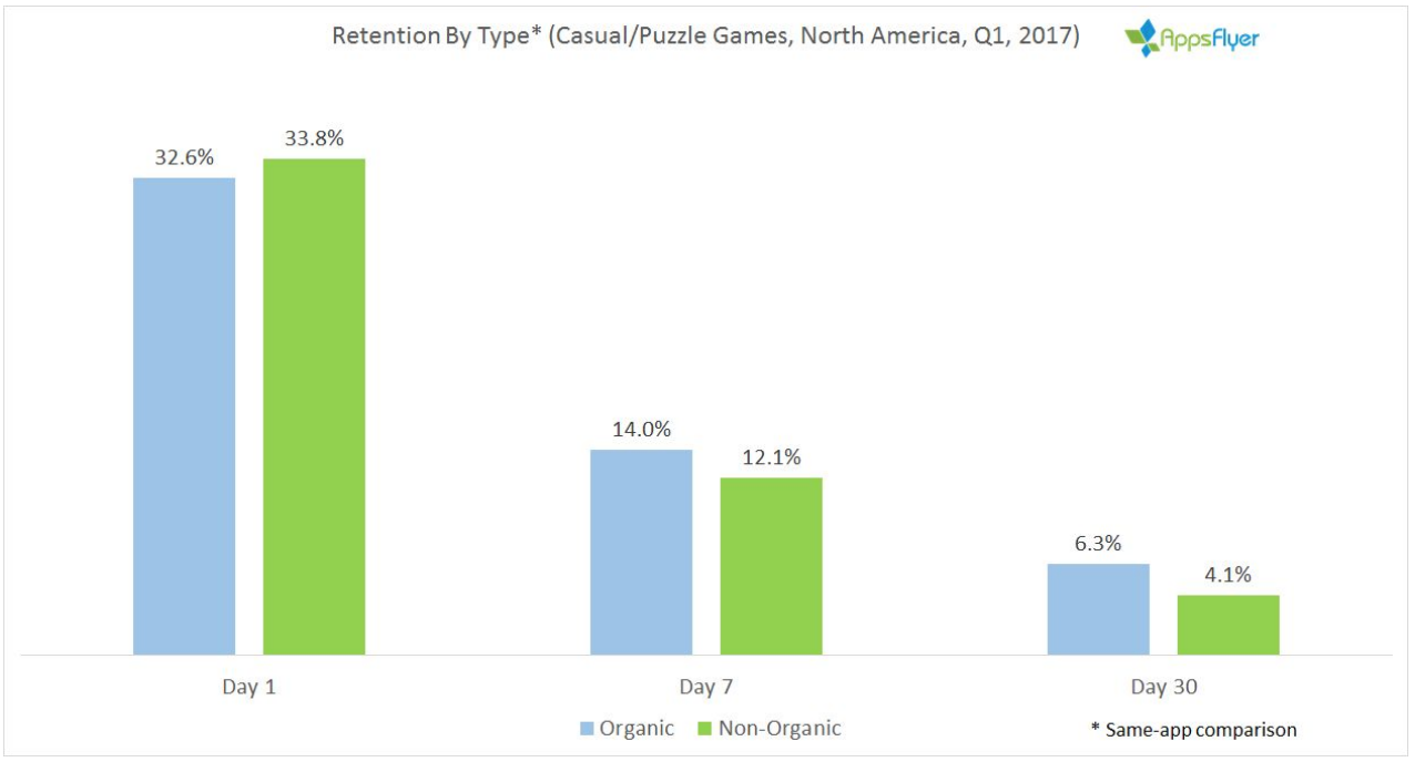 • Долгосрочное удержание на iOS выше. Оно всегда было выше, и связано это с тем, что iOS лучше платят, а когда платят – лучше привязываются к игре и дольше играют. Улавливаете причинно-следственную связь?