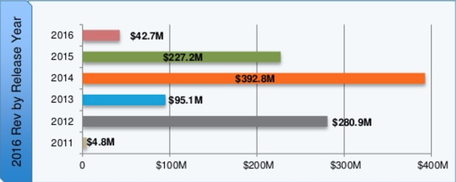 Как видим, основные деньги собирают тайтлы, вышедшие в 2012, 2014 и 2015 годах. Как раз такие данные совпадает с выходами разных саг от King.